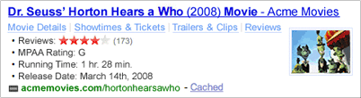 Yahoo! y Google han comenzado a utilizar RDFa para mejorar la experiencia de usuario, al mejorar la apariencia de resultados de búsqueda individuales. Aquí un ejemplo del enfoque de Google: